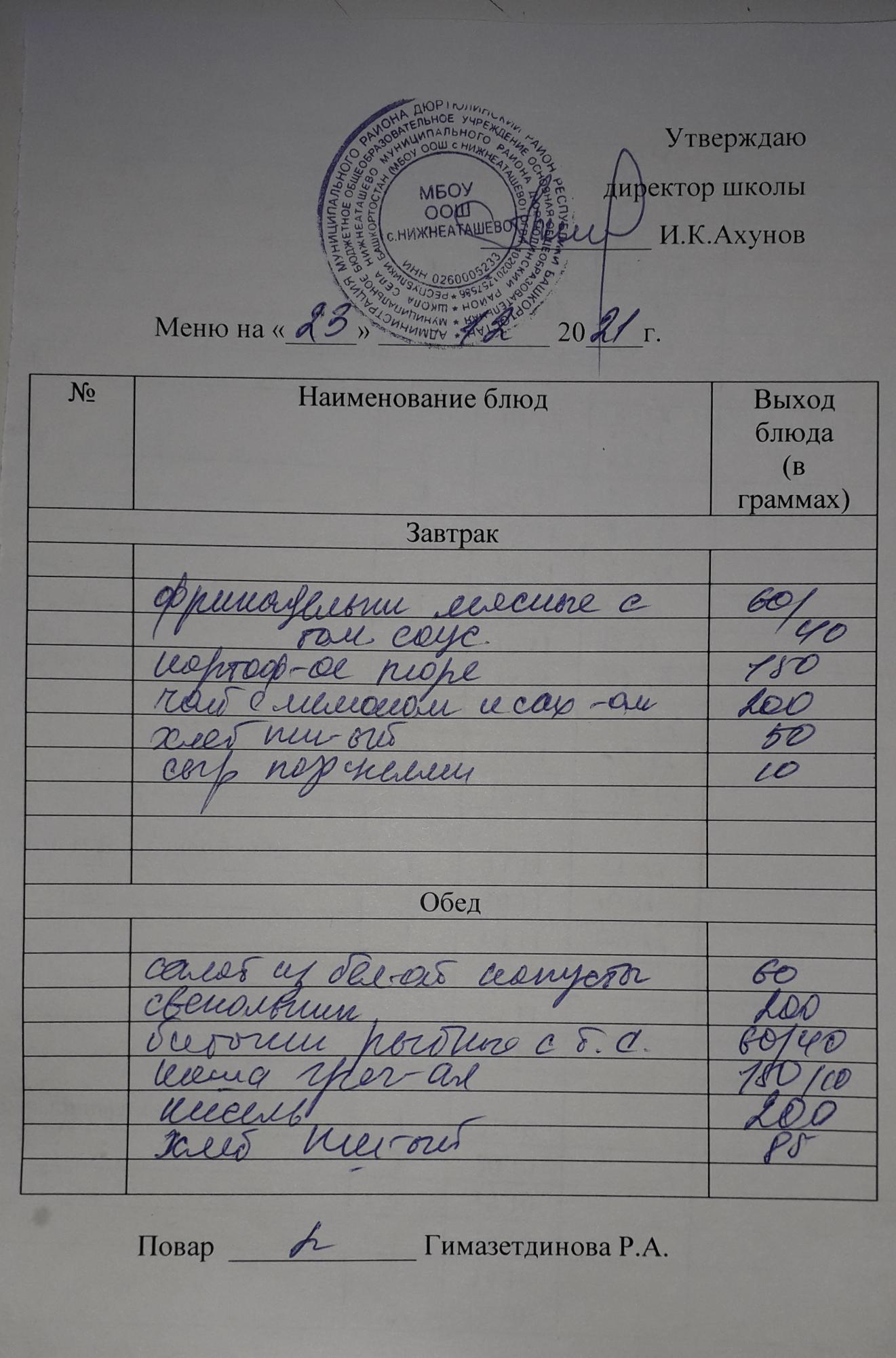 (завтрак 1-4, ММС,5-9)