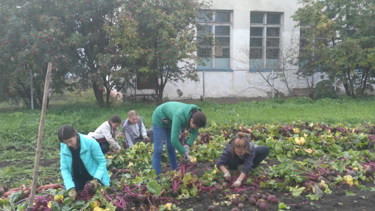 На пришкольном участке.